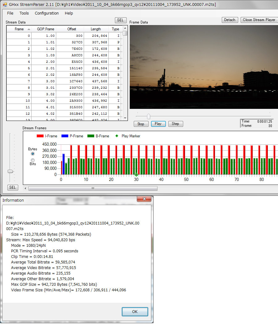 フレームサイズが、GOP1は37~40に対し、GOP3は44なんで、非常に微妙な差だなぁと思いました。