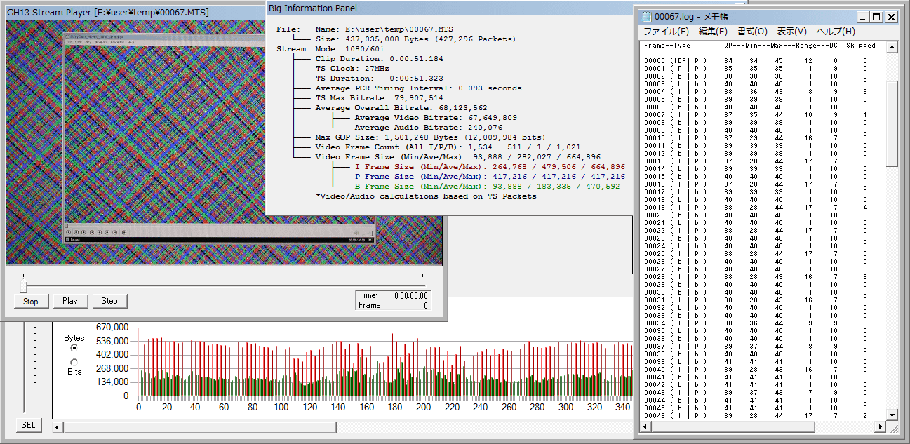 そのクリップをStreamParserで見てみるとアベレージが100Mオーバーのモノばかりです。valkyrieだからかと思いましたが、GOLGOP3-13でも高ストレスなクリップは