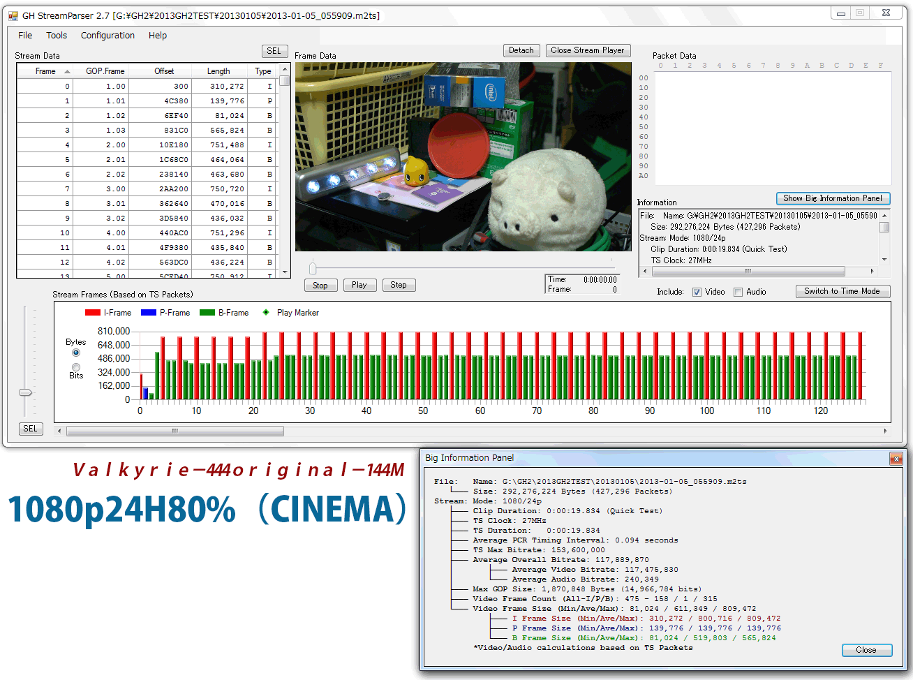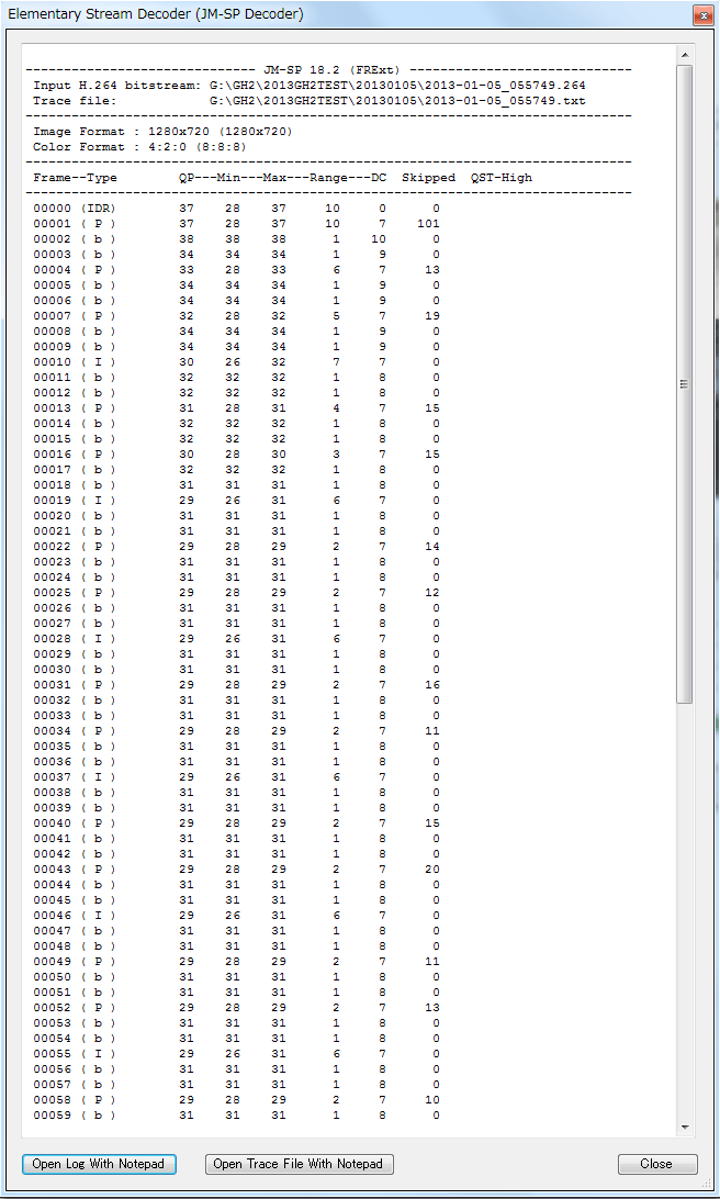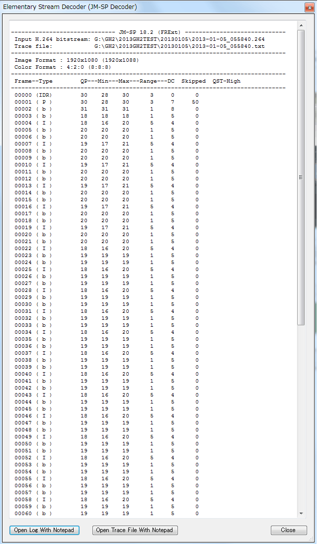 JM-SPデコーダはこの結果を表示させているとStreamParser本体のBig Info Panelを開けませんので、私やhar-kさんはこの画面の一番下にある「Open Log With Notepad」を押してlogをメモ帳で表示させてからこの画面を閉じて、Big Info Panelを開けてから全部重ねて一枚のスクショにしています。