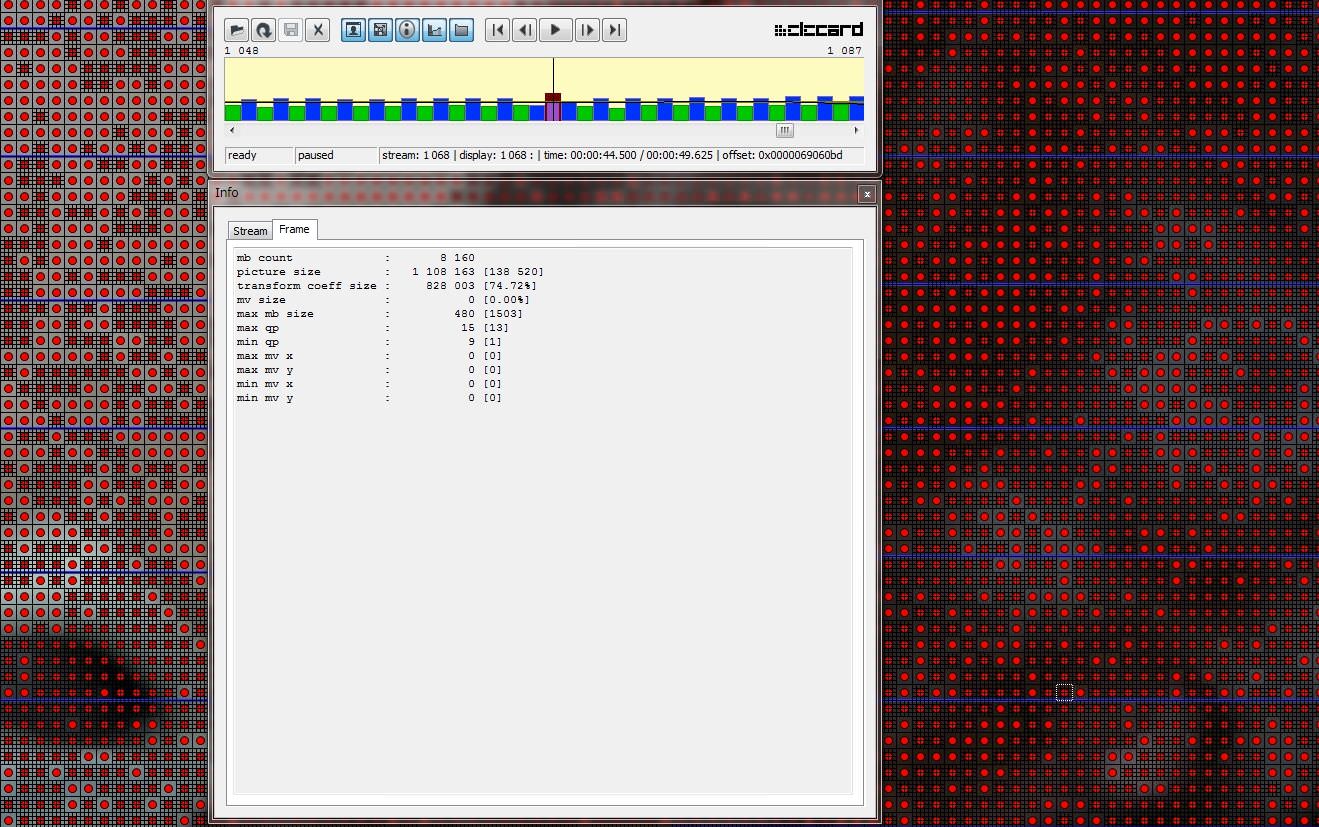 いつものAVCHDと違ってIフレームにも16x16のマクロブロックが混じってますね。(AVCHDのIフレームでは全て4x4)