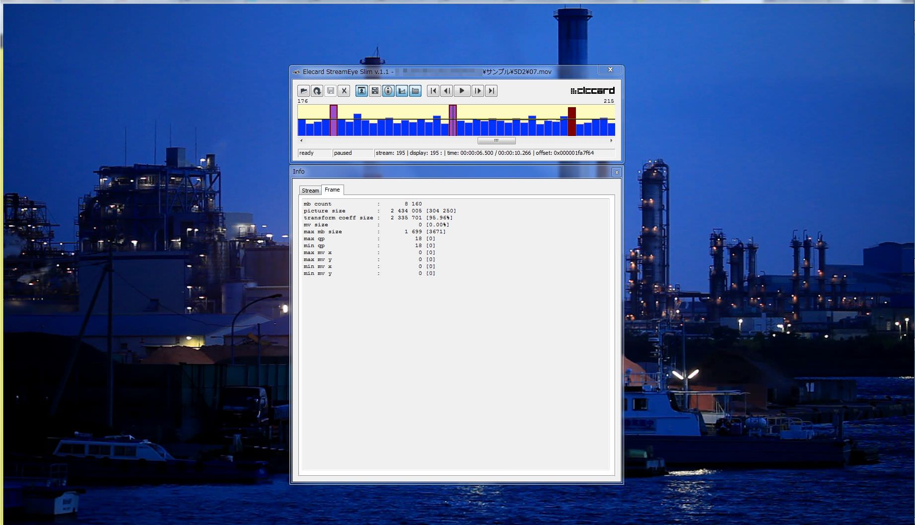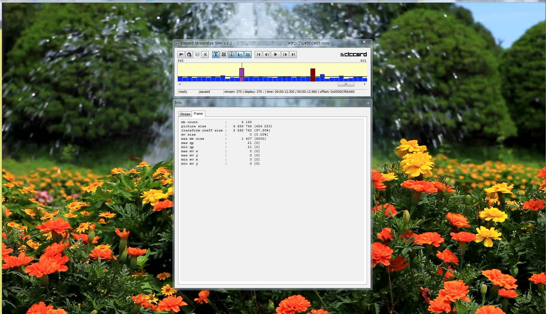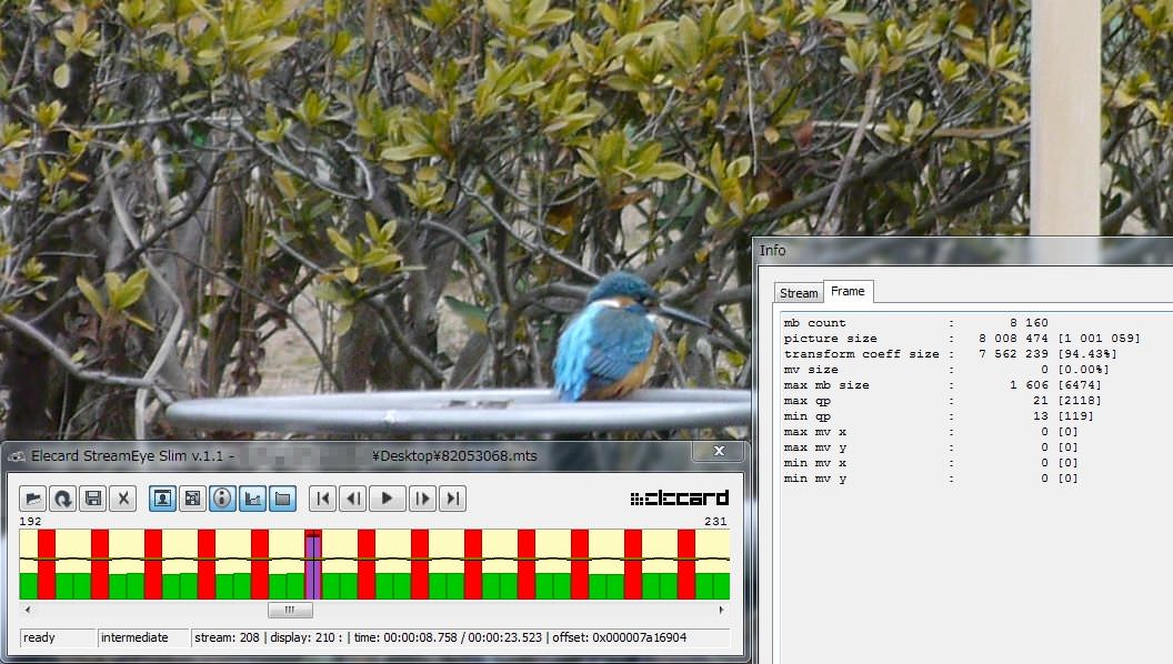 そして・・・最近はコレに加えてStreameyeでのqpチェックも加わったので、更に手間が増えました^^; qpチェックはいろいろなケースでテストしなければ意味がありませんが、5秒くらい撮れば十分なのでそれで見てみます。(narunobuさんにお願いしているのはこの部分です)