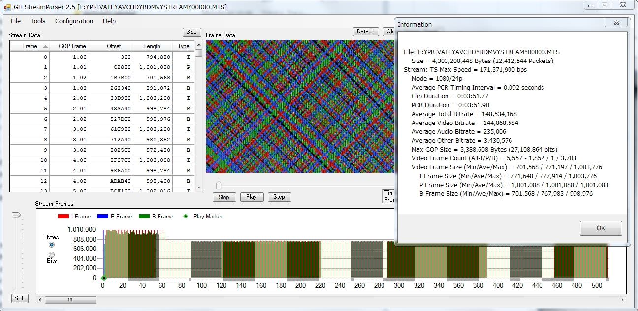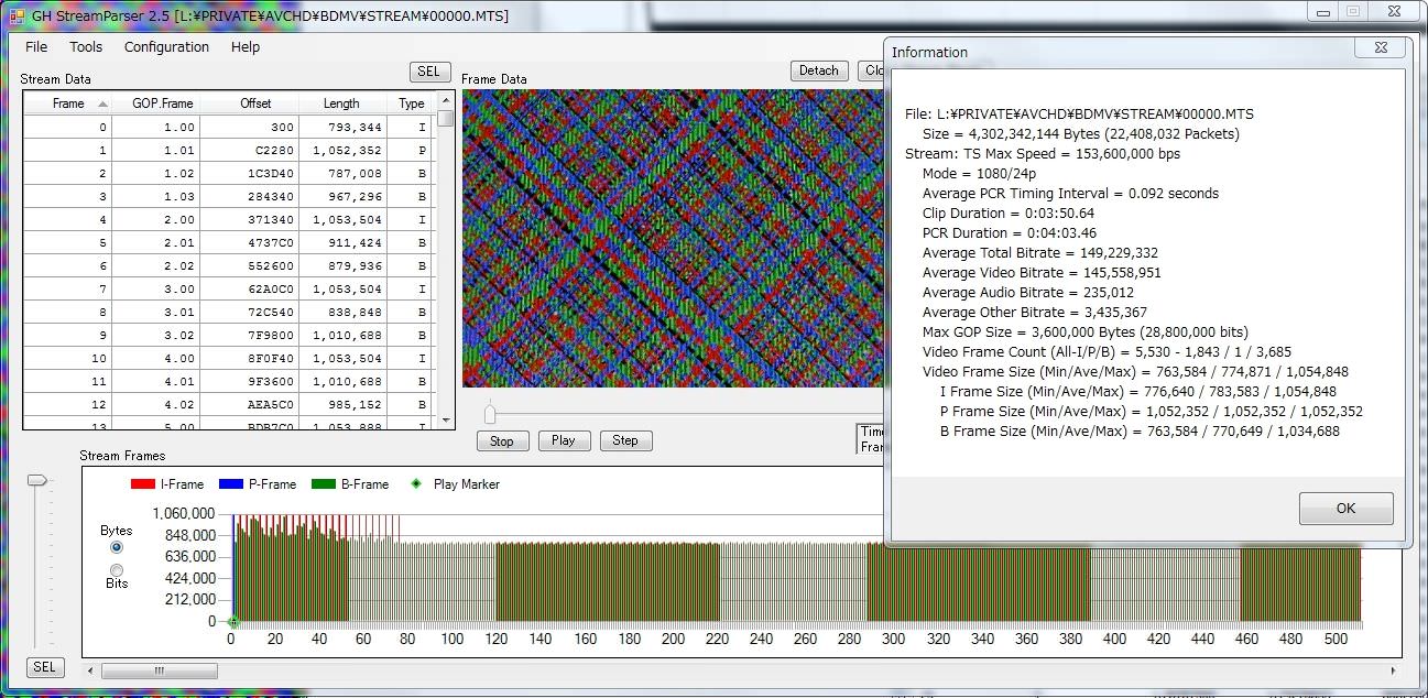 イントラやGOP3ではHBRのフレームサイズが24pなんかと比べ伸びないようなので、GOP6でどうなるか楽しみです。