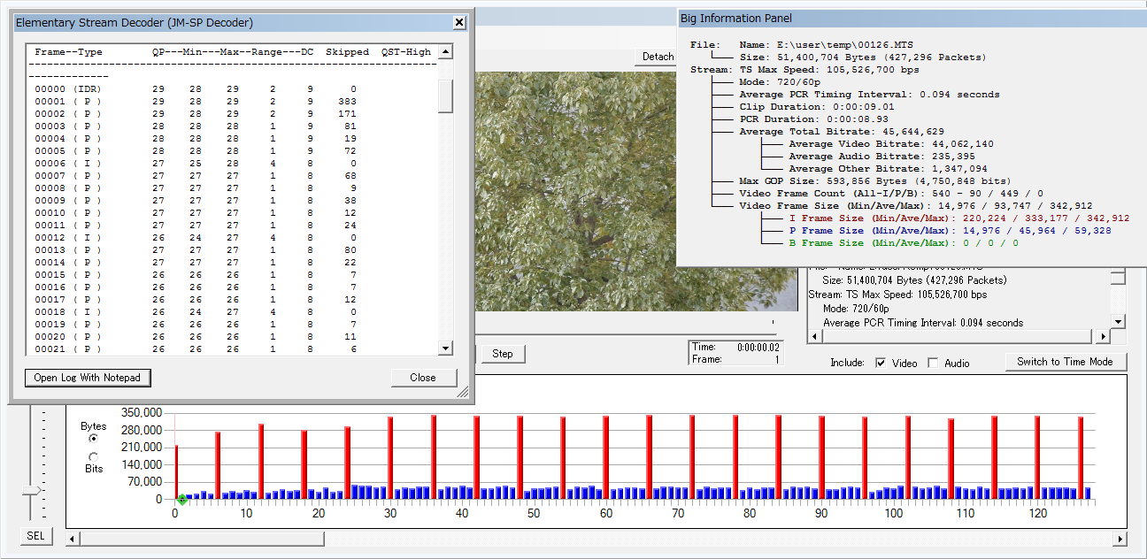 高いqp=本来ならデータ量は少なくなるはずなのにフレームサイズが大きくなる→Stray曰く、処理を細かくやっている・・・という想像になっているわけで、もしかしたら同じ土俵でエンコードしているけど、結果の出方がフレームの種類によって違うのかもしれません。