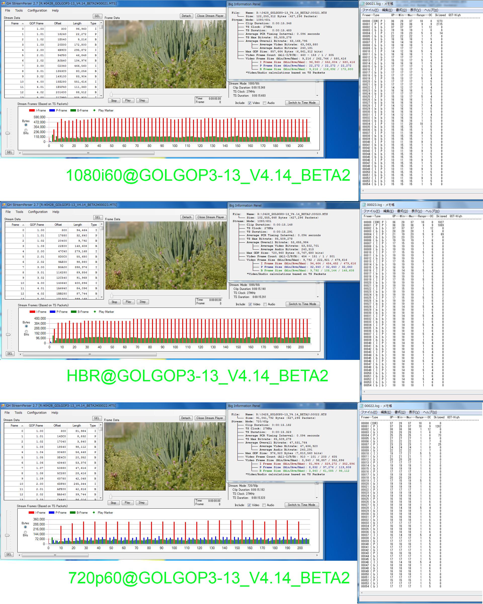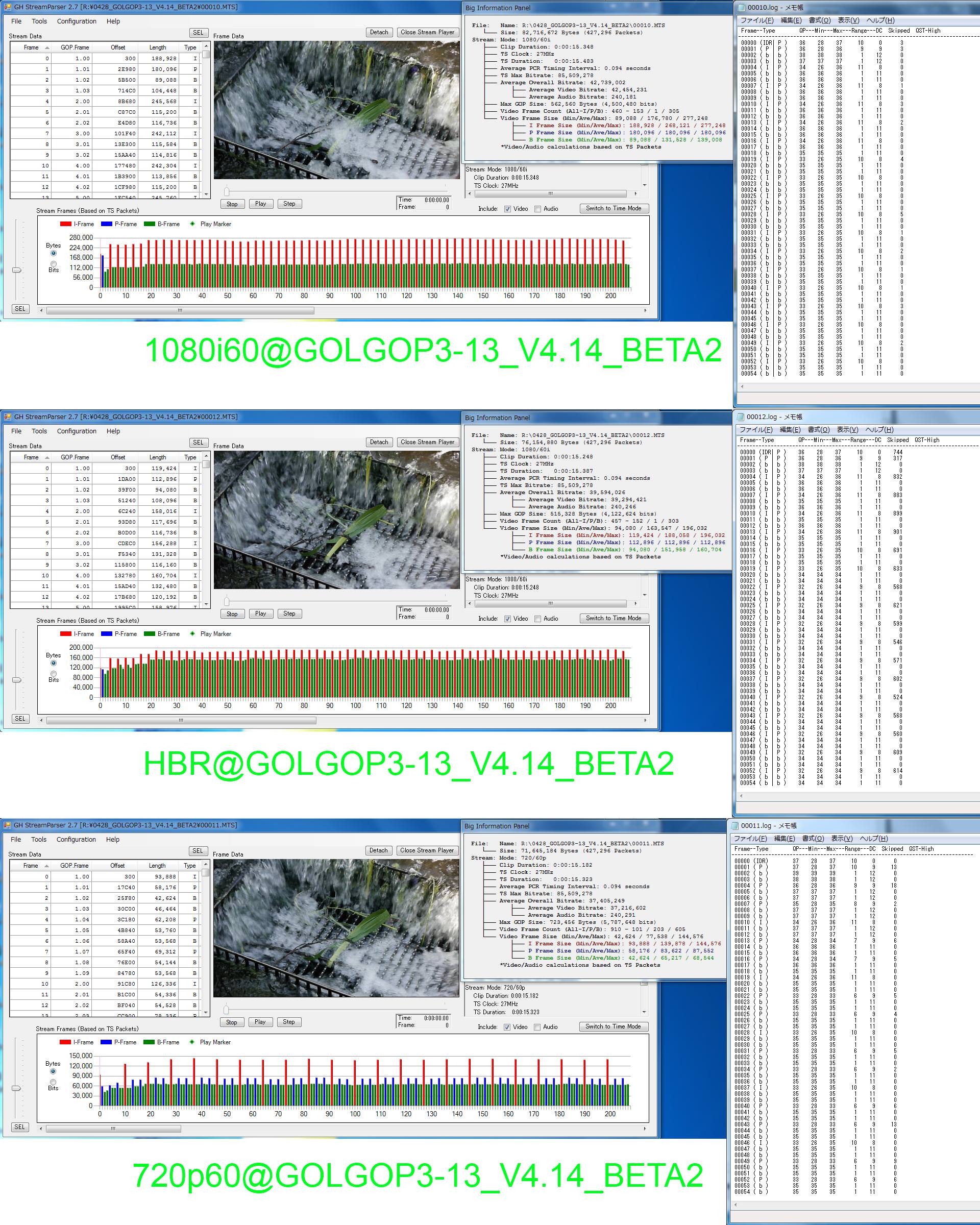 bkmcwdさん"GOLGOP3-13_V4.14_BETA2"の1080i60(FSH)、HBRと720p60(SH)を試してきました。