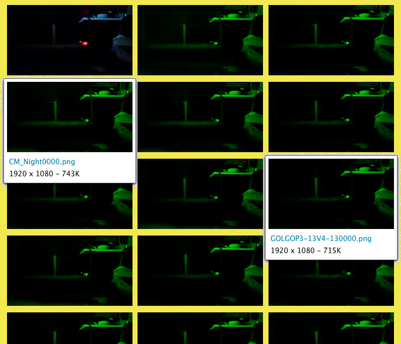 で、「…ん? 勝ち? はて?」と思ったので、それぞれの画像を等倍表示して仔細に観察してみました。すると、Canis Nightで撮影した動画からの切り出しが、確かに他のどのパッチで撮影したデータよりも、この暗闇の中で階調を記録しているようです(添付画像x2枚参照)。