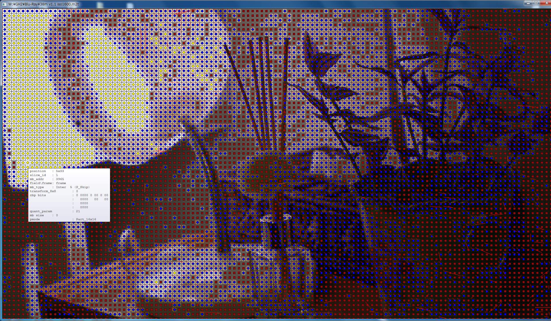 ISO1600の方をStreamEyeで覗いてみました。↓下画像 ※19フレーム目(Pフレーム)