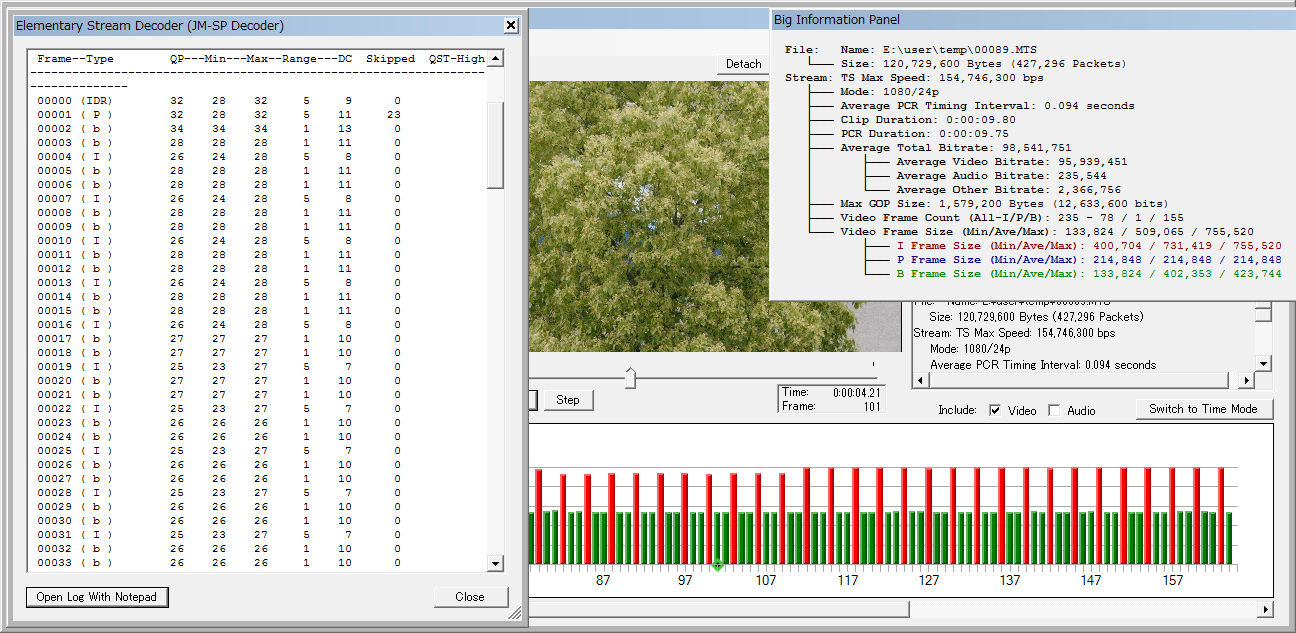 今朝の続きになりますが、自作の尖った?マトリクスの試写の結果などなど。微風の植え込みなら条件次第で I-frame/ビットレートも延びますが、Sedna系に共通してるのは↓こんな画角で控え目のISO800が得意?カモ。 映像的に情報量それなりで、QPもそれなりに低めに。