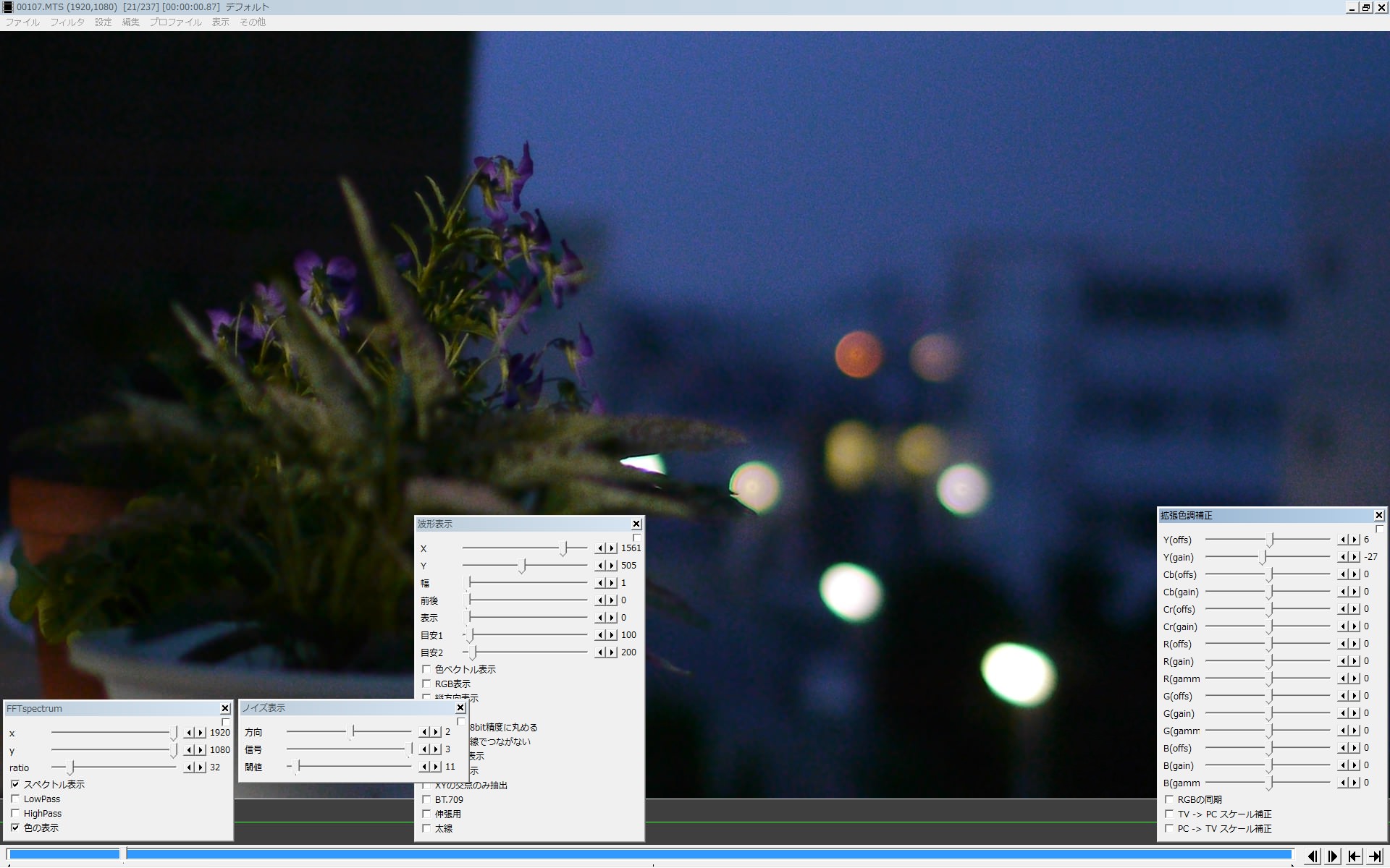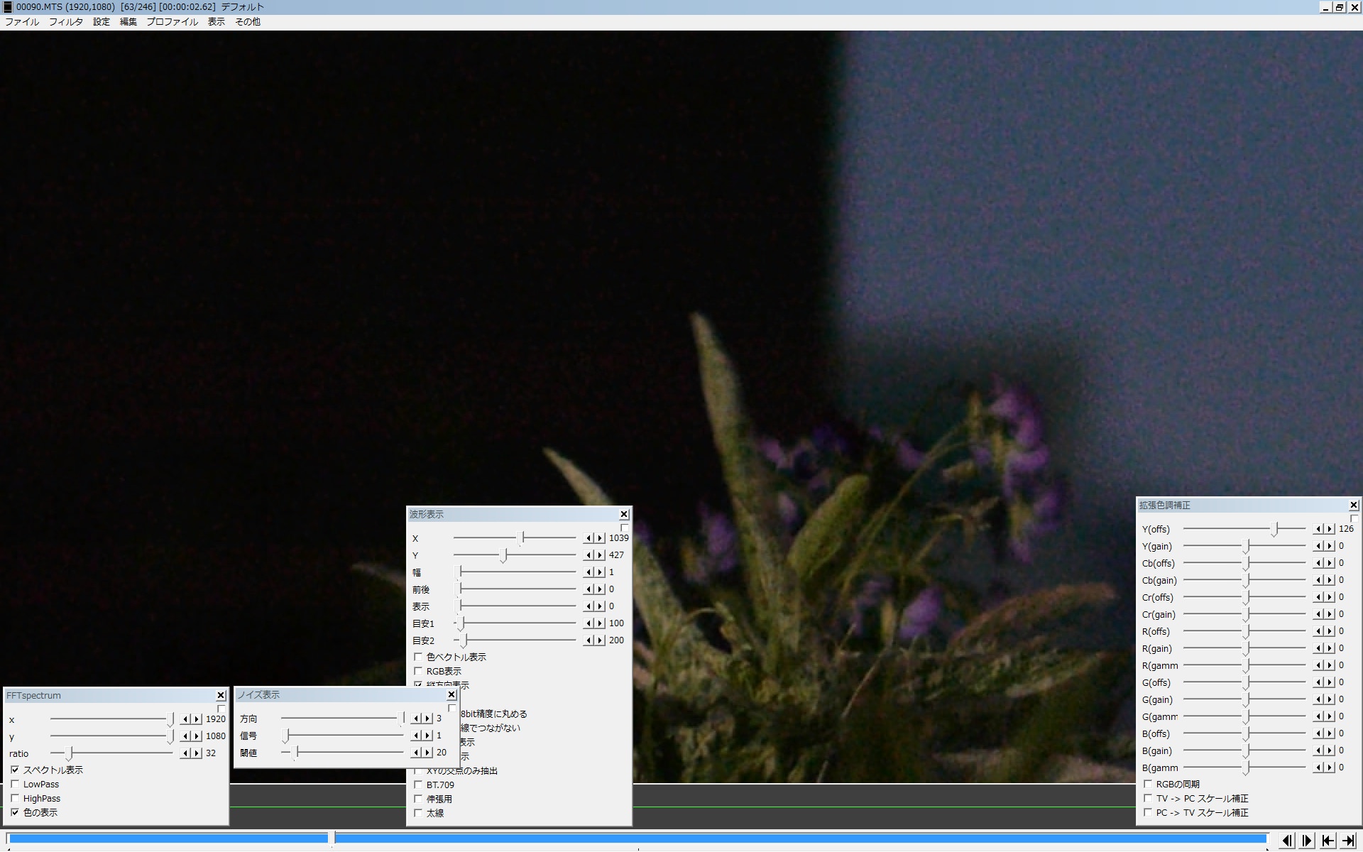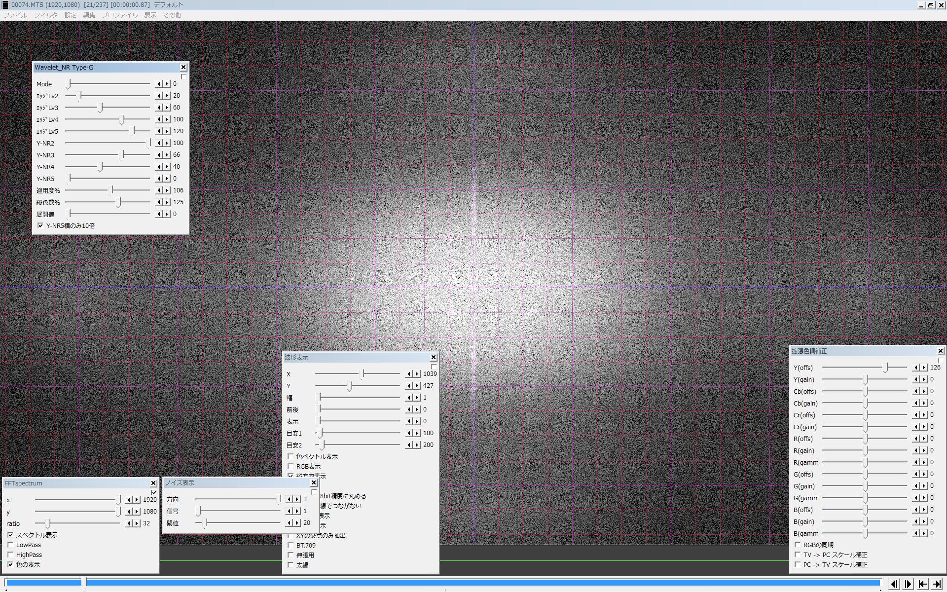 周波数帯じゃなくって「暗部よりも中途半端に明るい部分に色ノイズ」ってのが、今回のメインです。高周波は強調したハズなのに、(4x4)マトリクスの荒い処理では期待外れにちかい印象ですね。余りノイズの大きさの対するコントロールは出来ず、「特定の条件での量」だけプッシュしてるような、、、?。