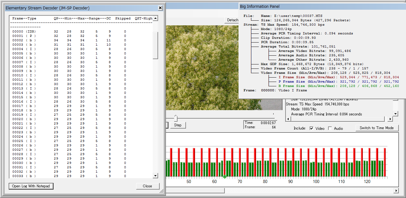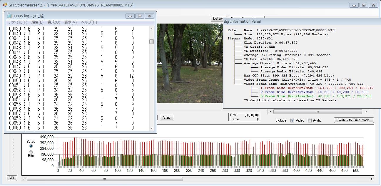 いつも同じ林でサンプル撮ってますが、明るさが違うとかなりビットレートが変わるので・・・