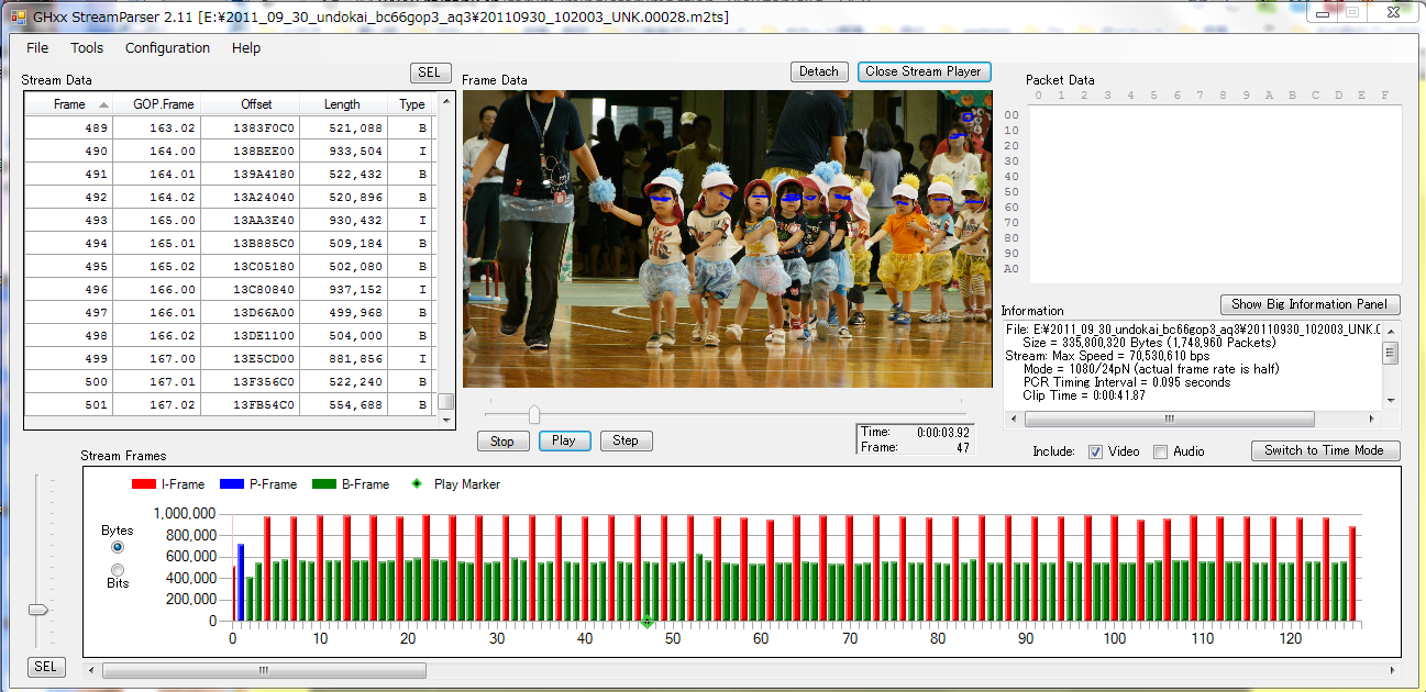 bkmcwdさん、エラーが出たファイルのStreamperserはこんな感じでした。 10秒と書いたのはうそでした(汗) 今見直すと39秒撮れてますね。しかも編集でもこのテイク使えてますし。 エラーは出たものの、それはこれだけ高ビットレートで撮っているのだから、当たり前というように私は解釈してます。 カードはサンディスクのエクストリームⅢ、クラス10です。