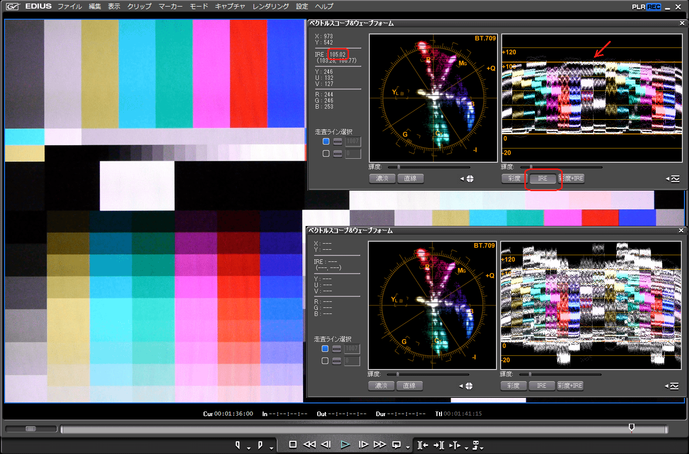REC中も 記録したものを再生しても この環境では バイブラント(+2+2+2+2) でも 0 ~100 IREに収まっていました。